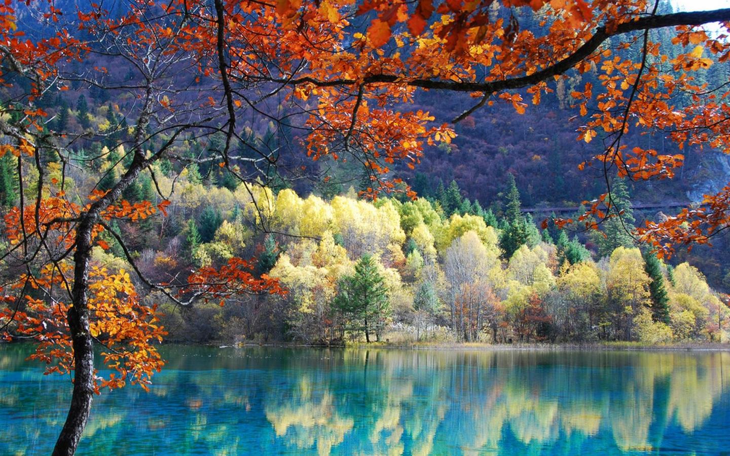 - Hồ Ngũ Hoa là một hồ nước nhiều màu cạn, dưới đáy là những thân cây cổ đổ nát.
